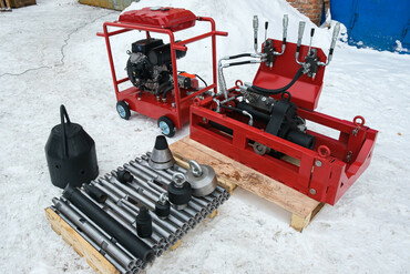 Гидростанция №1 для Т20, Т32: ДВС Lifan 192 FD-2 ручной старт 18 л/с, однопотоковая, гидронасос INDUSTRIALTECHNIC SC 6 см3, (Рвд 10м, БРС LSQ-S1-04PF-BSP), Давление в гидросистеме 230 бар, размеры 400мм*600мм*1000мм, вес 105 кг.
